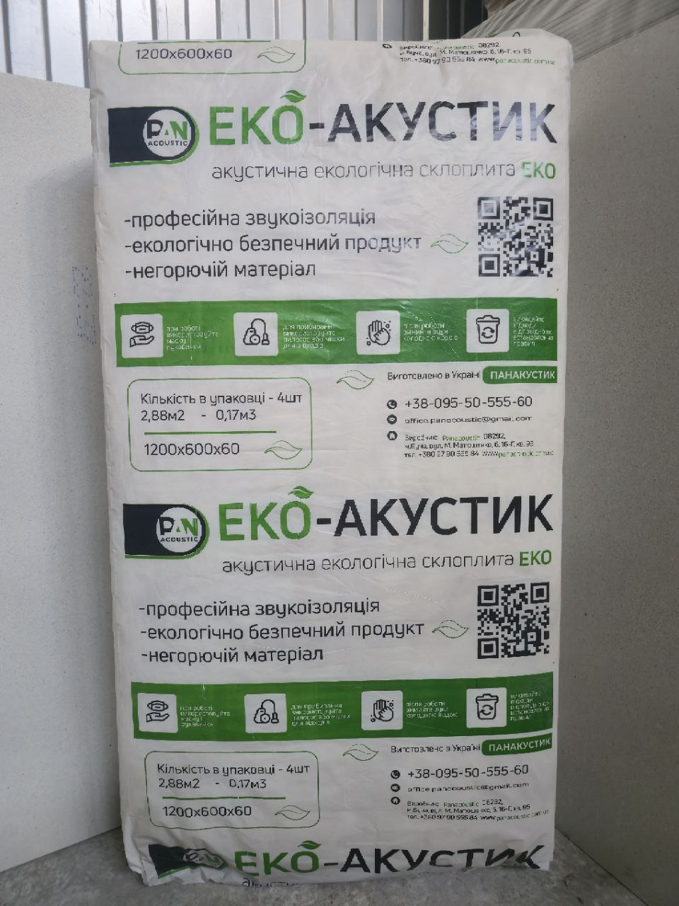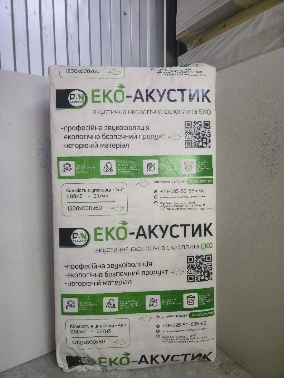 Звукопоглинаюча плита ЕКО-Акустик (Шуманет-Еко) 1200x600x60 мм